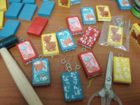 これが作りたかったんです。販売するのは、ちゃんとしたキャラのものにしますけど。これはもう勢いがとまらなくなって、自分用として、らくがきしてしまったものです。この画像では解らないかもしれないけど、これ、木なんです。ペンキで色を塗って、筆で絵を描いたのです。ニスも塗りました。かわいいです。この木を求めて、ホームセンターの端切れ木材の山を漁ってきました。たくさん材料買ってきました。ちゃんとツウハンしたり七夕に持っていったりしようと思います。楽しいです。エクスタシーです。やめられないとまらない。カ・イ・カ・ン。 |