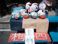梅四のお店@安城七夕祭り2004.8.6〜8は、こんな感じでした。 毎年来てくれる子たちも、ちびっこだったのが大きくなってたり、なんだか感慨深いです。小中学の同級生が子供を連れて歩いてて、「超ひさしぶりー!」と言い合ったり。高校の同級生が普通にうさかぶりに惹かれて歩いてきて、話しかけたら「なにやっとるや?」と言われたり。仕事が終わってから遊びに来てくれたり。一緒に飲んだりして、昔話して、大笑いして。BBSにカキコミしてくださっている方で、でもお会いしたことない人ともハジメマシテと不思議な感じで挨拶させてもらったり。本当に、殺す気ですか?と言いたくなるくらい暑かったけど、楽しかった。終わってからピナコロ行って飲むビールは最高でした。ピナコロでも大笑いして、ほんと楽しかったな。 しかし。どっぷり浸かっとったもんで、もろ三河弁に戻ってまって、神奈川に戻っとるのに直らんやんねぇ。どうせえ。おもろいだけど、地元に到着してしばらくの間は、言葉がぎこちないじゃんねえ。でも気付くとべらべらやんね。どうしてだかやぁ。おそがいて。 上京したての時は、三河弁が恥ずかしくてしょうがなくて、「知らずに使ってたら注意して!」と周りの人に言っていたけど、今はあんまり気にならないなあ。まあ、どれが通じてどれが通じないか、解った上で喋っているのとそうでないのとでは、大きな違いがあるとは思うけど。ちなみに、「どうせえ」は「どうしよう」、「おそがいて」は「こわいってorこわいよね」です。あとは、伝わる、よね? |